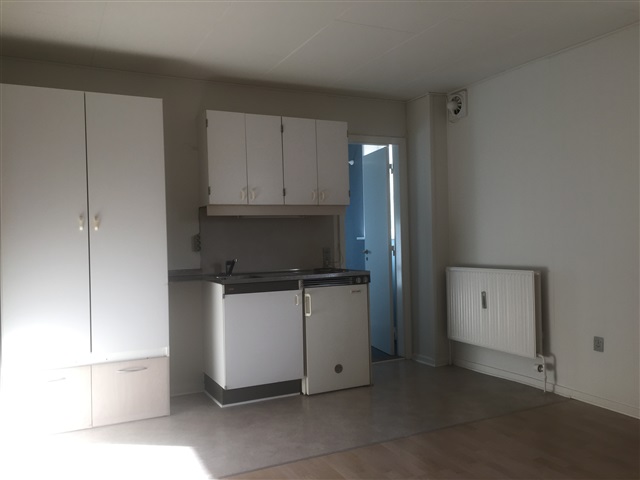 Lejligheden indeholder: Stue/køkken og badeværelse